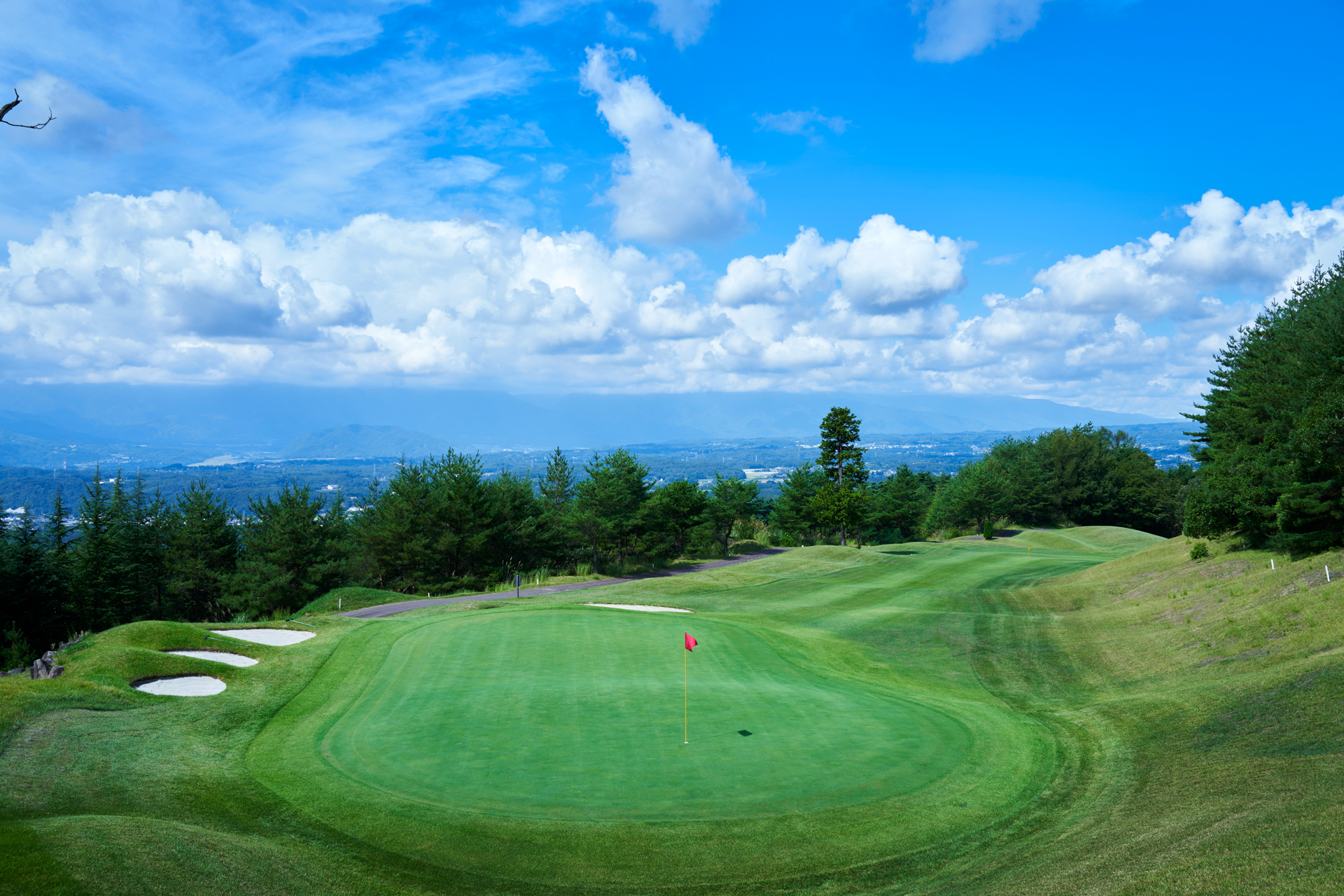 標高800メートルの丘陵地に106万m²の広大なコース。 八ヶ岳と南アルプスの雄大な山々を望むロケーションの元で ゴルフをお楽しみ下さい。