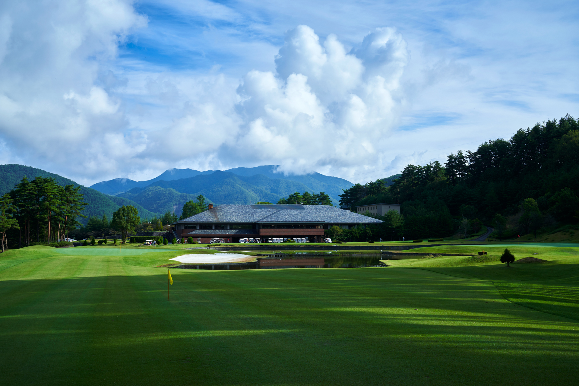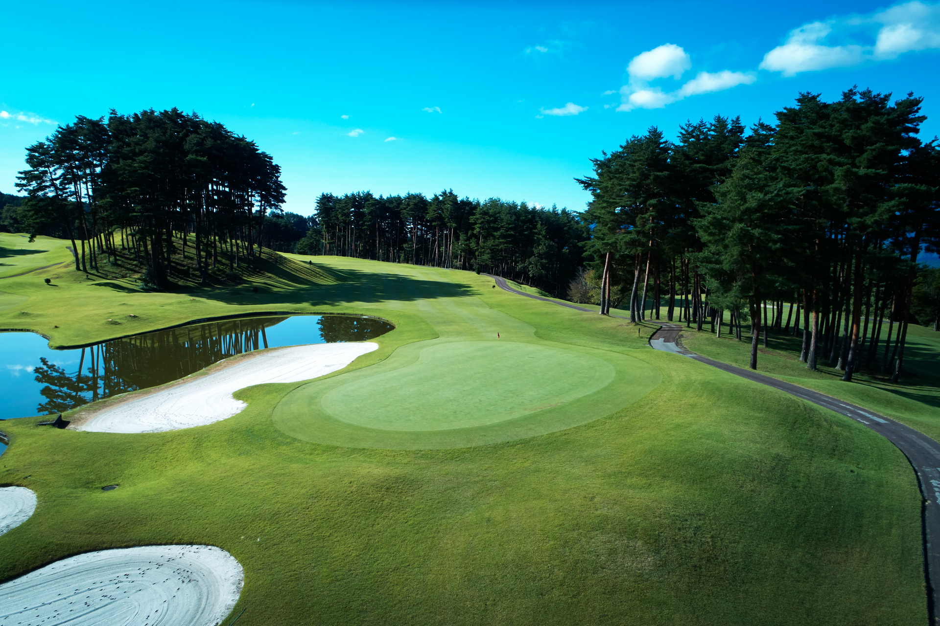 (グリーン右手前大きな池に注意)
